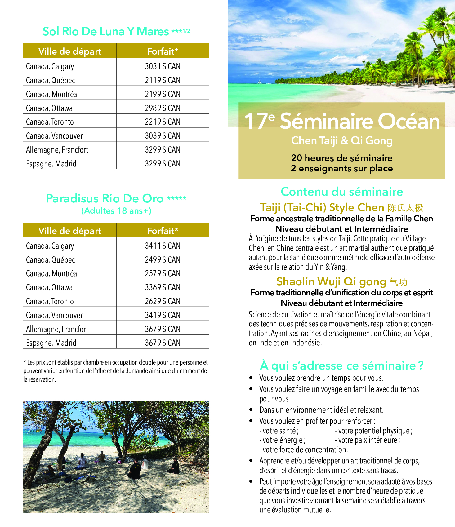 J’en suis à mon 3e séminaire Océan avec Shaolin Wuji à Cuba. À chaque fois, ce fut une expérience très plaisante et enrichissante. Je recommande fortement les séminaires Océan à tous ceux qui veulent vivre une expérience de pratique de qigong et taiji traditionnels chinois intense et ainsi approfondir leur pratique dans une ambiance relaxe et amicale.